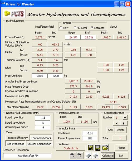 The analysis shows that the process air had to change by 300 SCFM to effect a 3°C rise in exhaust temperature and 300 Pa rise in pressure drop.  This change resulted in momentum increase from 11.7 to 13.5 N (16% increase), which likely explains the higher attrition rate observed in manufacturing.