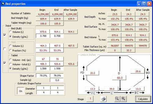 Update the new tablet shape and bulk density in the bed properties window as shown below.