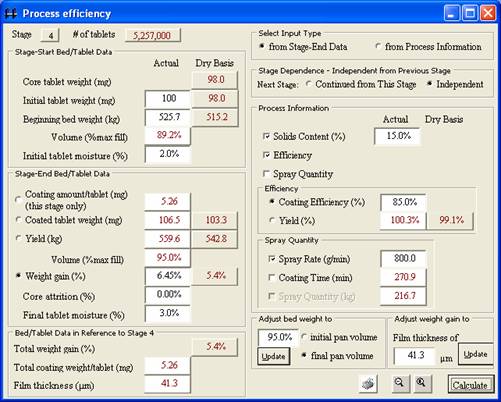 Enter the same film thickness as the previous tablet design and press 'Update'.  Enter the final fill level and press 'Update.  Press 'Calculate' to complete the calculation.